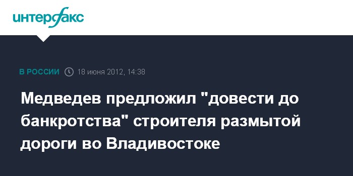 Медведев предложил "довести до банкротства" строителя размытой дороги во Владивостоке