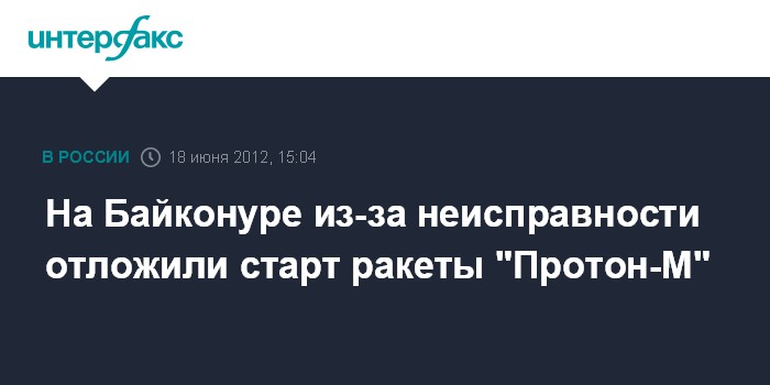 Байконур. 18 июня. INTERFAX.RU - На Байконуре утром в понедельник приостановлены работы по подготовке к запуску ракеты-носителя "Протон-М", которая должна вывести в космос спутник SES-5 ("Сириус-5").