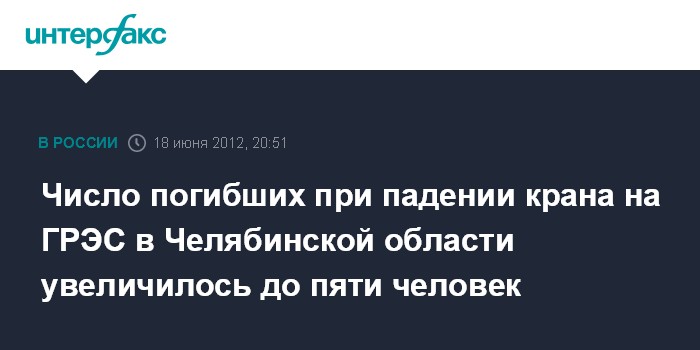 Число погибших при падении крана на ГРЭС в Челябинской области увеличилось до пяти человек