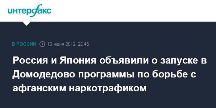 Россия и Япония объявили о запуске в Домодедово программы по борьбе с афганским наркотрафиком