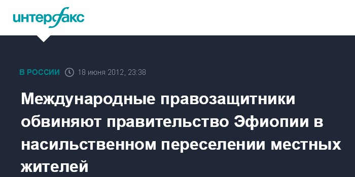 Лондон. 18 июня. INTERFAX.RU - Власти Эфиопии насильственным образом выселяют десятки тысяч жителей долины Омо, где планируется возведение сахарных плантаций, сообщает в понедельник BBC со ссылкой на международных правозащитников.