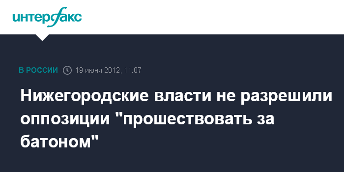 Нижний Новгород. 18 июня. INTERFAX.RU - Нижегородские оппозиционеры - организаторы проекта "Жизнь "по закону" получили отказ от администрации Нижнего Новгорода на проведение шествия "В магазин за батоном".
