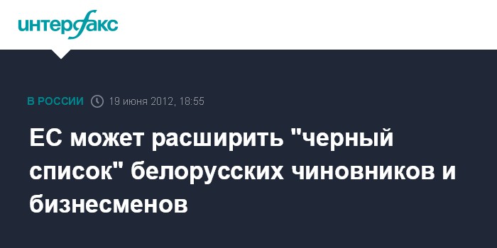 Брюссель. 19 июня. INTERFAX.RU - Евросоюз не исключил расширения "черного списка" белорусских чиновников и бизнесменов, в отношении которых действуют санкции.