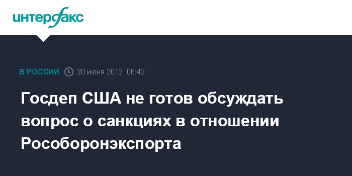 В.Нуланд сделала это заявление в ответ на просьбу прокомментировать заявление главы комитета палаты представителей США Илеаны Рос-Летинен, которая потребовала введения санкций против Рособоронэкспорта.