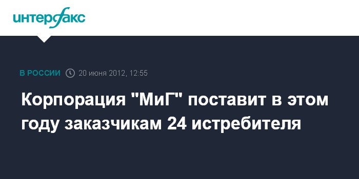 Москва.20 июня. INTERFAX.RU - Российская самолетостроительная корпорация "МИГ" планирует в 2012 году удвоить выпуск современных истребителей по сравнению с предыдущим годом, сообщил "Интерфаксу-АВН" генеральный директор корпорации Сергей Коротков.
