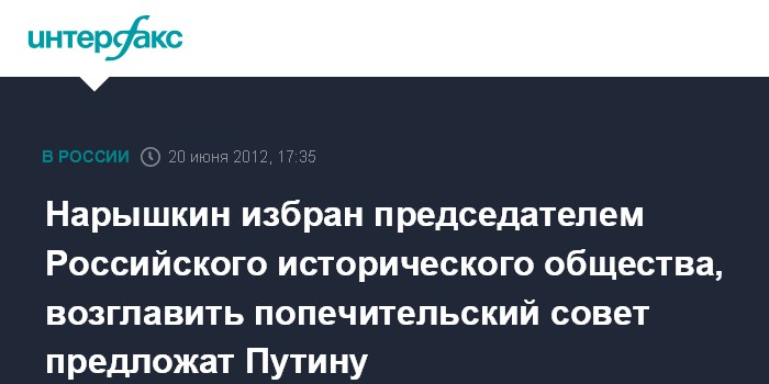 Нарышкин избран председателем Российского исторического общества, возглавить попечительский совет предложат Путину