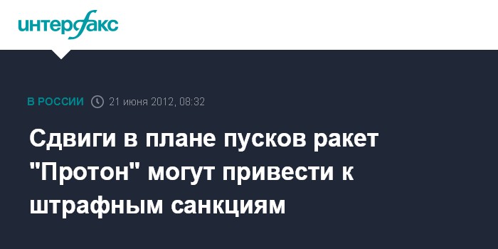 Москва. 21 июня. INTERFAX.RU - Иностранные заказчики могут предъявить штрафные санкции к российской стороне в случае серьезного смещения графика пусков ракет "Протон", считает директор по развитию космического кластера Фонда "Сколково" Дмитрий Пайсон.