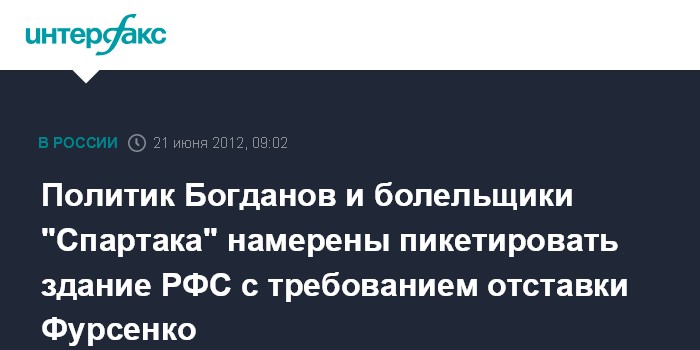 Политик Богданов и болельщики "Спартака" намерены пикетировать здание РФС с требованием отставки Фурсенко