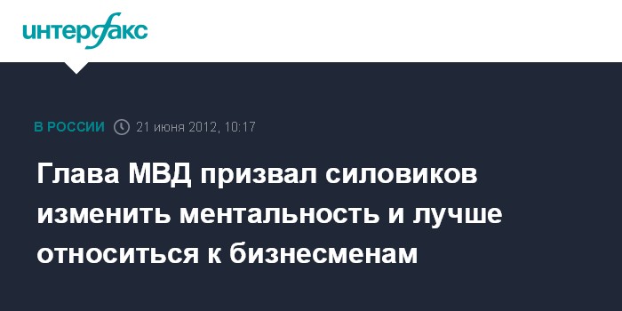 "Когда у людей в силовых структурах будет положительное восприятие (бизнеса и людей, занятых в этой сфере - ИФ), тогда повысится уровень деловой активности, улучшится предпринимательский климат в нашей стране, и к этому мы должны стремиться", - отметил Колокольцев. "Правда, мне хотелось бы, чтобы деловая активность проявлялась не в ускоренном выводе капитала, а в увеличении инвестиций в нашу экономику. От нас действительно это зависит", - подчеркнул министр.