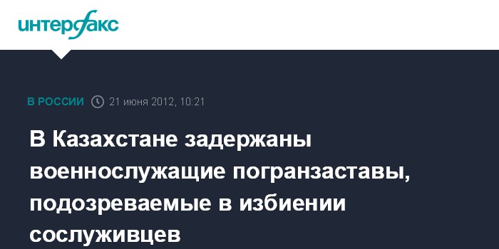 Астана. 21 июня. INTERFAX.RU - Трое военнослужащих по контракту, в том числе начальник погранзаставы "Терсайрык" в Восточно-Казахстанской области, задержаны по подозрению в избиении солдат срочной службы, самовольно покинувших место службы, сообщила главная военная прокуратура Казахстана.