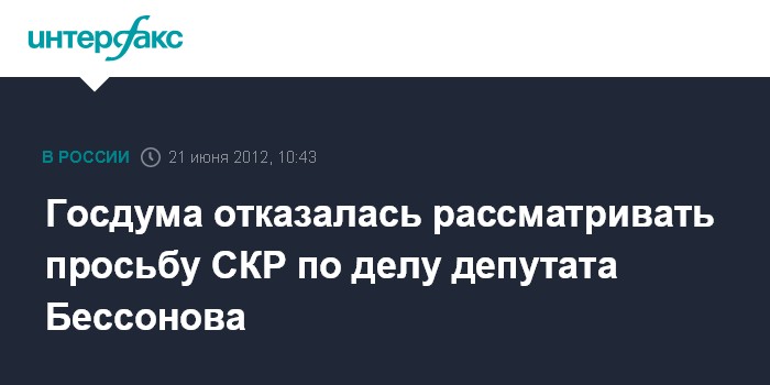Москва. 21 июня. INTERFAX.RU - Совет Государственной Думы в четверг принял решение не рассматривать поступившее в палату заявление Следственного комитета о даче согласия на возбуждение уголовного дела в отношении депутата-коммуниста Владимира Бессонова.