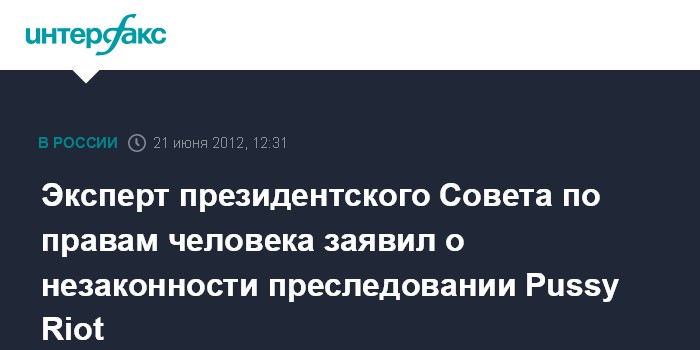 Москва. 21 июня. INTERFAX.RU - Независимый эксперт считает, что уголовное преследование участниц панк-группы Pussy Riot незаконно.