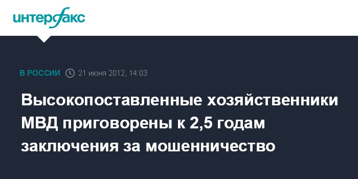 Высокопоставленные хозяйственники МВД приговорены к 2,5 годам заключения за мошенничество