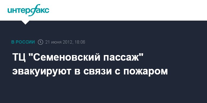ТЦ "Семеновский пассаж" эвакуируют в связи с пожаром