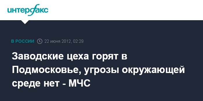Заводские цеха горят в Подмосковье, угрозы окружающей среде нет - МЧС