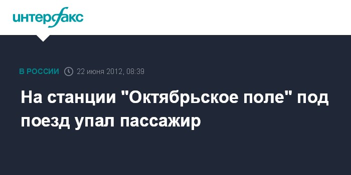 Москва. 22 июня. ИНТЕРФАКС-МОСКВА - В пятницу утром на пути станции "Октябрьское поле" Таганско-Краснопресненской линии столичного метрополитена упал человек, что привело к сбою в движении поездов.