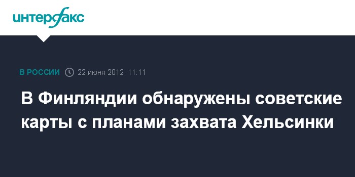 Хельсинки. 22 июня. INTERFAX.RU - В Финляндии найдены карты Генштаба советской армии, раскрывающие планы захвата столицы государства Хельсинки.