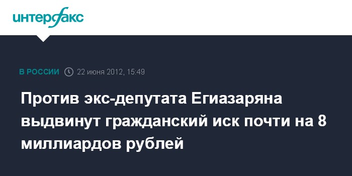 Против экс-депутата Егиазаряна выдвинут гражданский иск почти на 8 миллиардов рублей