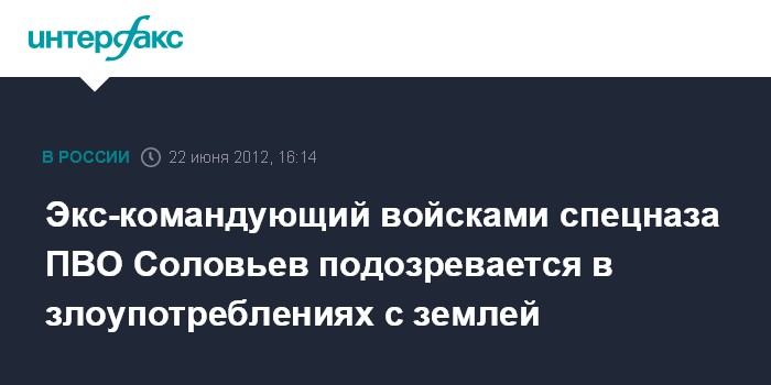 Экс-командующий войсками спецназа ПВО Соловьев подозревается в злоупотреблениях с землей