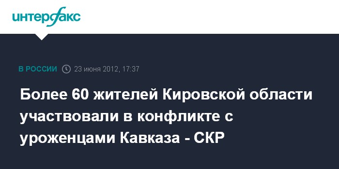 Более 60 жителей Кировской области участвовали в конфликте с уроженцами Кавказа - СКР