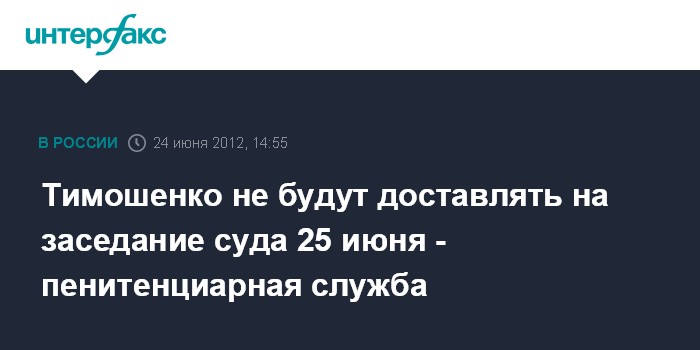 Тимошенко не будут доставлять на заседание суда 25 июня - пенитенциарная служба