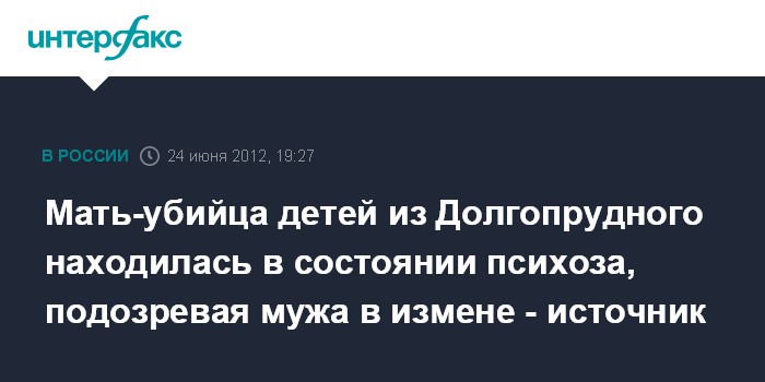 Мать-убийца детей из Долгопрудного находилась в состоянии психоза, подозревая мужа в измене - источник