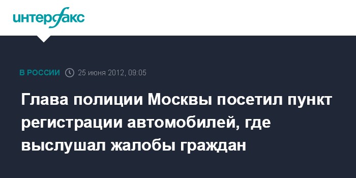 Москва. 25 июня. INTERFAX.RU - Начальник столичного главка МВД генерал-майор полиции Анатолий Якунин внепланово посетил один из пунктов регистрации автомобилей на востоке Москвы.