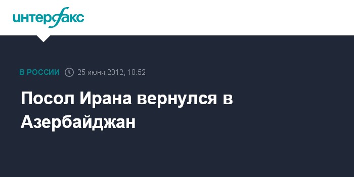 Баку. 25 июня. INTERFAX.RU - Глава дипломатической миссии Ирана в столице Азербайджана Мухаммедбагир Бахрами возвратился в Баку из Тегерана после месячного отсутствия.