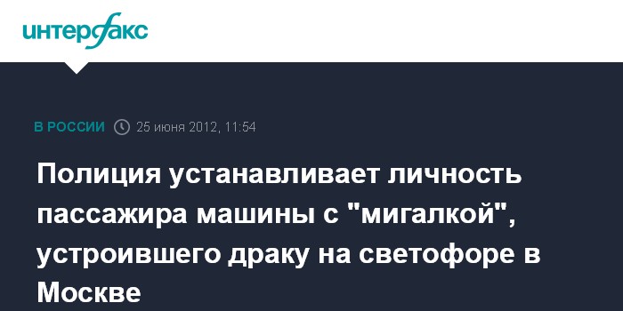 Полиция устанавливает личность пассажира машины с "мигалкой", устроившего драку на светофоре в Москве