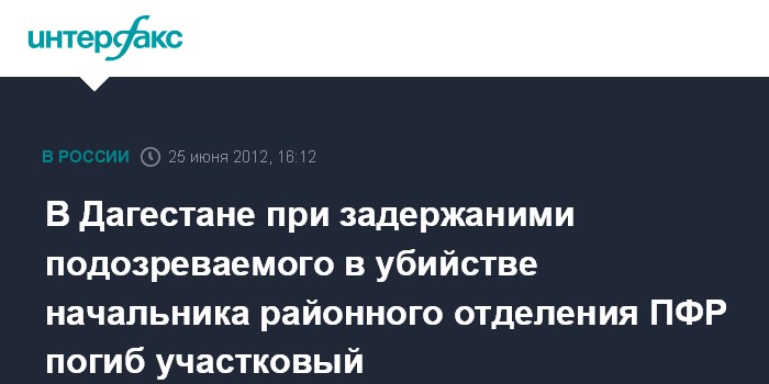 Махачкала. 25 июня. INTERFAX.RU - Сотрудники полиции в понедельник задержали на границе Акушинского и Дахадаевского районов Дагестана подозреваемого в убийстве главы отделения Пенсионного фонда по Акушинскому району, второго подозреваемого преследуют, в перестрелке с бандитами погиб участковый инспектор, сообщили "Интерфаксу" в пресс-службе МВД Дагестана.
