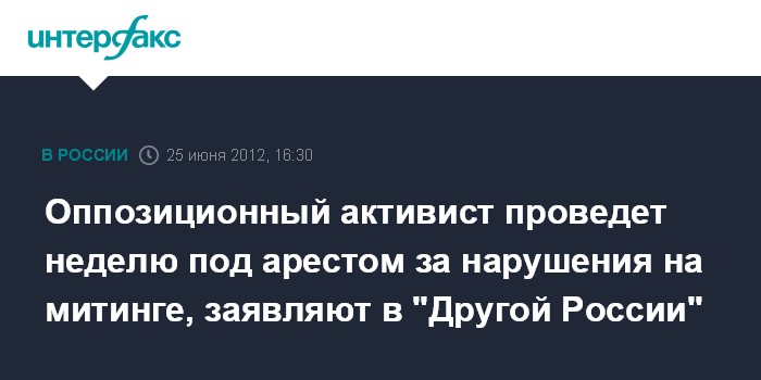 Оппозиционный активист проведет неделю под арестом за нарушения на митинге, заявляют в "Другой России"