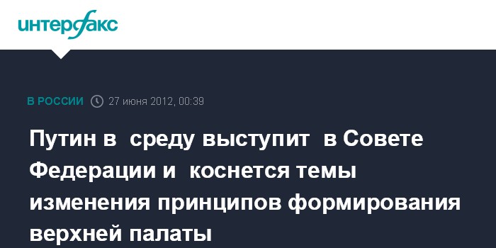 Путин в среду выступит в Совете Федерации и коснется темы изменения принципов формирования верхней палаты