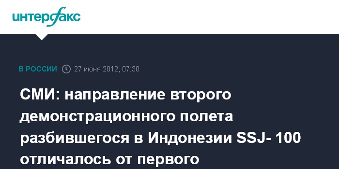 СМИ: направление второго демонстрационного полета разбившегося в Индонезии SSJ- 100 отличалось от первого