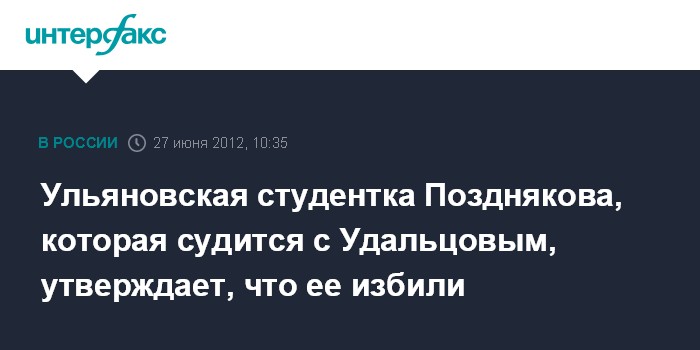 Ульяновск. 27 июня. INTERFAX.RU - Студентка ульяновского авиаучилища Анна Позднякова, которая судится с лидером "Левого фронта" Сергеем Удальцовым, заявила, что ее избили неизвестные.
