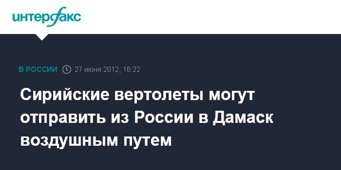 Сирийские вертолеты могут отправить из России в Дамаск воздушным путем
