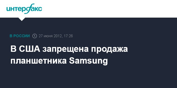 Москва. 27 июня. INTERFAX.RU - Компания Apple Inc. добилась решения суда США, согласно которому на территории страны немедленно запрещается продажа планшетного компьютера Samsung Galaxy Tab 10.1, сообщает Bloomberg.