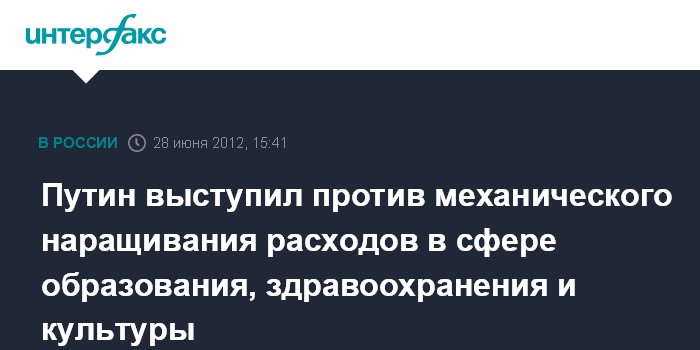 Москва. 28 июня. INTERFAX.RU - Нельзя идти по пути механического наращиванию бюджетных расходов в сфере образования, здравоохранения и культуры, считает президент РФ Владимир Путин.
