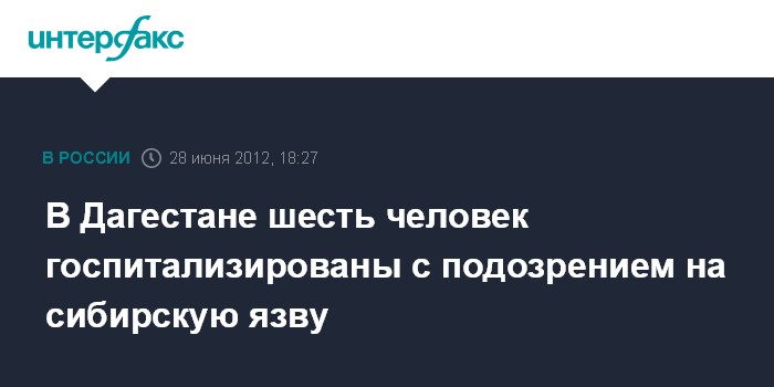 Махачкала. 28 июня. INTERFAX.RU - Шесть жителей Ахвахского района Дагестана, в том числе беременная женщина, госпитализированы в медицинские учреждения республики с подозрением на заболевание кожной формой сибирской язвы.