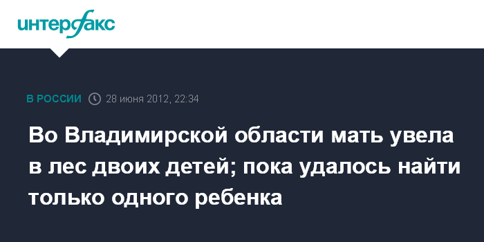 Владимир. 28 июня. INTERFAX.RU - Во Владимирской области идет поиск женщины, ушедшей с двумя детьми в лес.