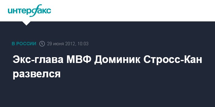 Лондон. 29 июня. INTERFAX.RU - Бывший глава МВФ Доминик Стросс-Кан после серии сексуальных скандалов развелся с женой тележурналисткой Энн Синклер, сообщает интернет-сайт британского таблоида "Клосер".