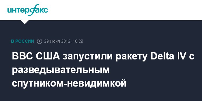 Вашингтон. 29 июня. INTERFAX.RU - С авиабазы ВВС США на мысе Канаверал (штат Флорида) в пятницу стартовала ракета Delta IV, которая должна вывести на орбиту сверхсекретный разведывательный спутник.