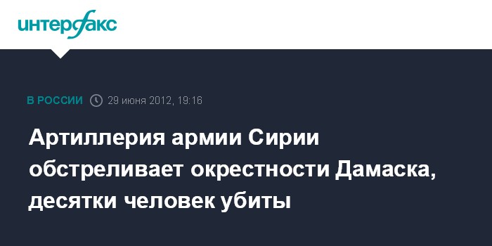 Бейрут. 29 июня. INTERFAX.RU - За последние два дня десятки человек стали жертвами артиллерийского обстрела армией оппозиционных сил в окрестностях столицы Сирии Дамаска, сообщили в пятницу представители Местных координационных комитетов и Сирийского наблюдательного совета по правам человека.