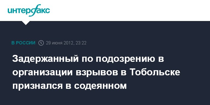 Задержанный по подозрению в организации взрывов в Тобольске признался в содеянном
