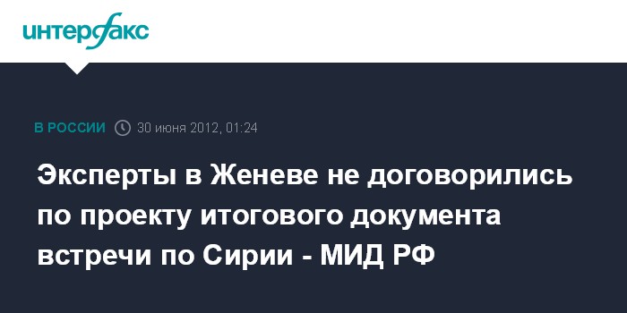 Эксперты в Женеве не договорились по проекту итогового документа встречи по Сирии - МИД РФ