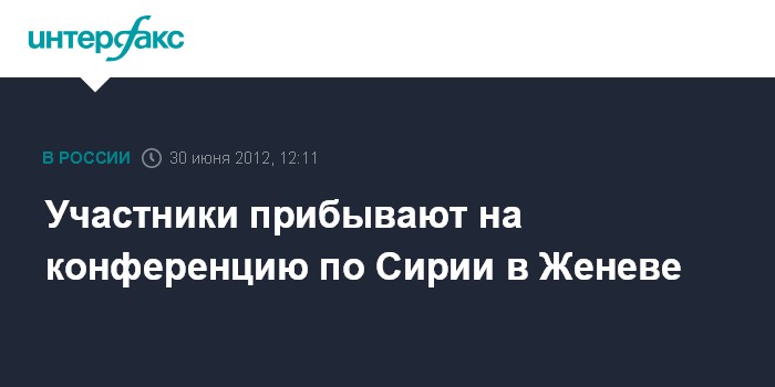 Женева. 30 июня. INTERFAX.RU - Делегации стран, участвующих в конференции по Сирии в субботу утром начали собираться в здании женевского отделения ООН, передает агентство ЭФЭ. Пресс-служба ООН, в свою очередь, сообщила, что встреча, видимо, начнется в 13:00 мск - на час позже, чем планировалось изначально.