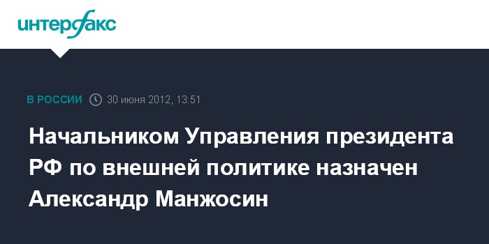 Начальником Управления президента РФ по внешней политике назначен Александр Манжосин
