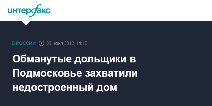 Москва. 30 июня. INTERFAX.RU - Обманутые дольщики подмосковного Ногинска захватили свой недостроенный дом, сообщил координатор движения "Однодольщики" Игорь Гульев.
