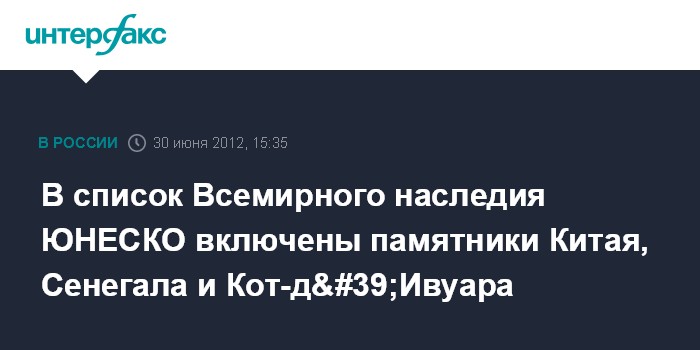 В список Всемирного наследия ЮНЕСКО включены памятники Китая, Сенегала и Кот-д'Ивуара