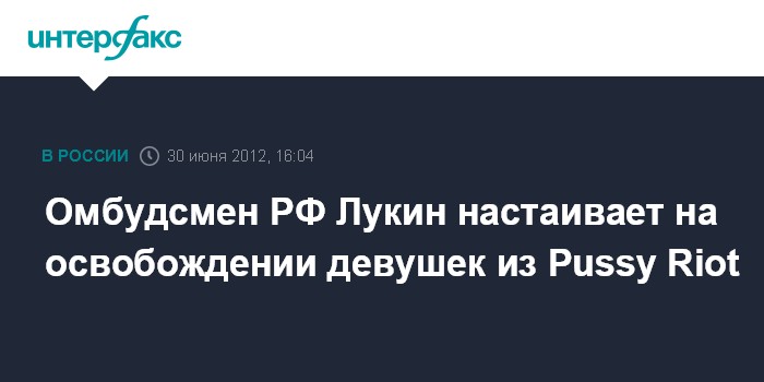 Владивосток. 30 июня. INTERFAX.RU - Участниц панк-молебна в Храме Христа Спасителя надо освободить из-под стражи, их нельзя насильно принуждать к раскаянию, убежден уполномоченный по правам человека в РФ Владимир Лукин. "Есть одна проблема, которую надо решать как можно скорее, желательно вчера: почему они (участницы Pussy Riot - ИФ) сидят-то собственно говоря? (. . .) Почему они сидят без быстрого суда?" - заявил В.Лукин в интервью программе "Вести в субботу" с Сергеем Брилевым на телеканале "Россия 1", которая транслировалась на Дальний Восток.