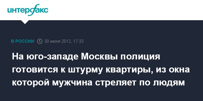 Москва. 30 июня. INTERFAX.RU - На юго-западе Москвы на улице Теплый стан в доме № 7 полиция готовит штурм квартиры, из которой несколько раз выстрелили по прохожим.